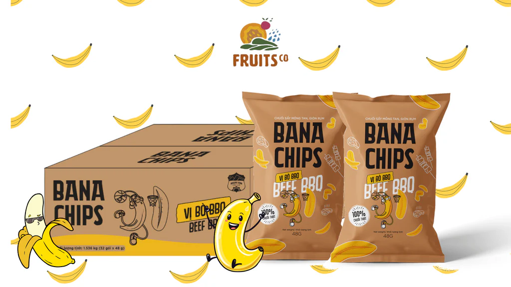 Thương hiệu FRUITSCO nổi bật với các sản phẩm snack chuối được chế biến từ nguyên liệu tự nhiên và chất lượng cao. Với sứ mệnh mang đến cho người tiêu dùng những món ăn nhẹ vừa ngon miệng vừa lành mạnh, FRUITSCO chế biến chuối bằng công nghệ tiên tiến, giúp giữ lại hương vị tự nhiên và giá trị dinh dưỡng. Các sản phẩm của FRUITSCO không chỉ đáp ứng nhu cầu về một bữa ăn nhẹ bổ dưỡng mà còn thu hút người tiêu dùng bởi bao bì bắt mắt và phong cách sống năng động, khỏe mạnh. Được sản xuất theo quy trình nghiêm ngặt và cam kết không sử dụng phẩm màu hay hương liệu nhân tạo, snack chuối FRUITSCO là lựa chọn lý tưởng cho bất kỳ ai yêu thích sự tươi ngon và an toàn cho sức khỏe.