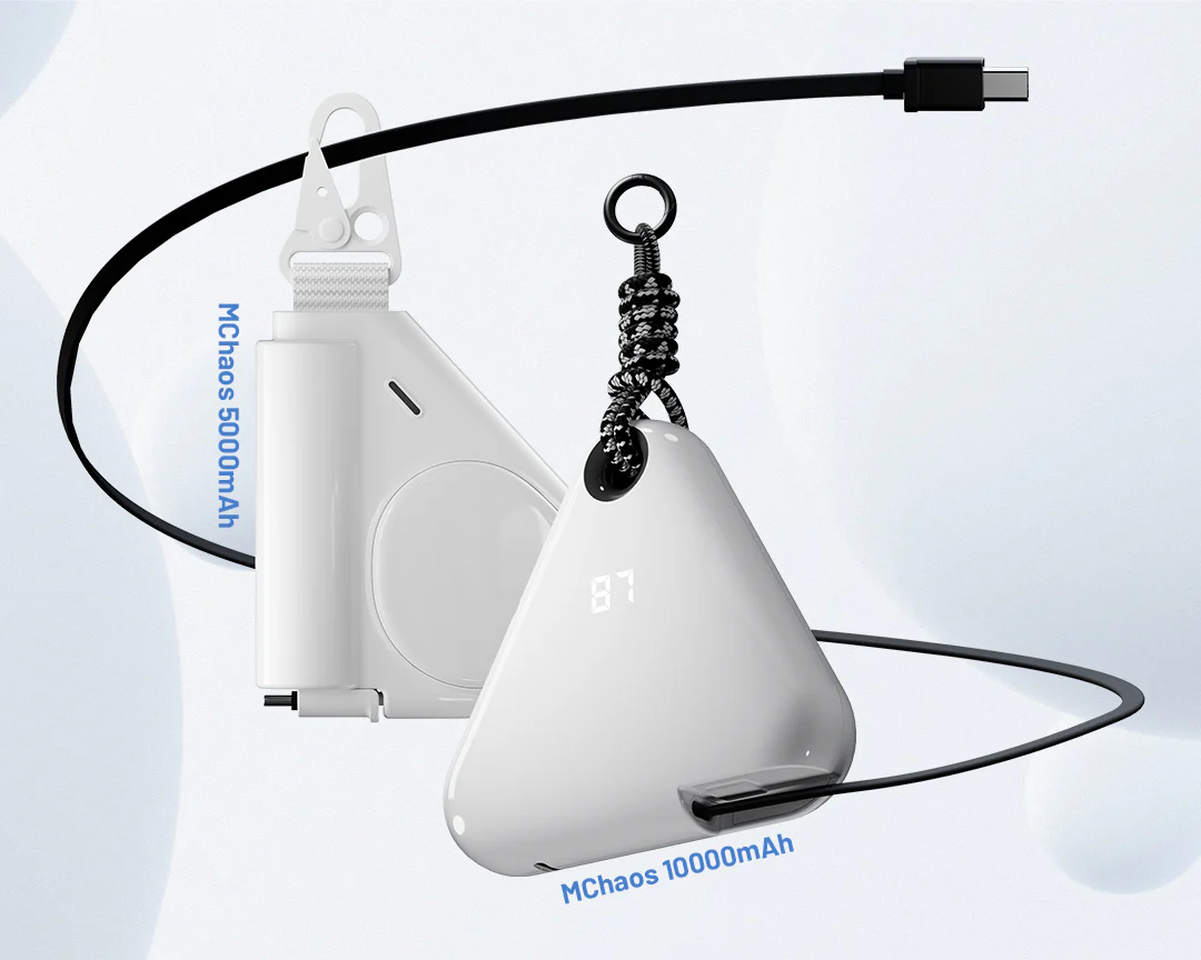 MChaos tập trung vào dòng pin sạc dự phòng thời trang, có thiết kế nhỏ gọn, cá tính và tích hợp dây sạc đi kèm. Đặc điểm nổi bật của sản phẩm là: