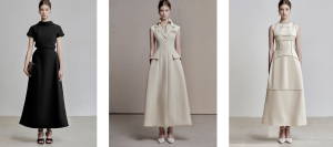 - Asymmetry and layering – subtle irregularities in hems, collars, or stitching that create visual depth.