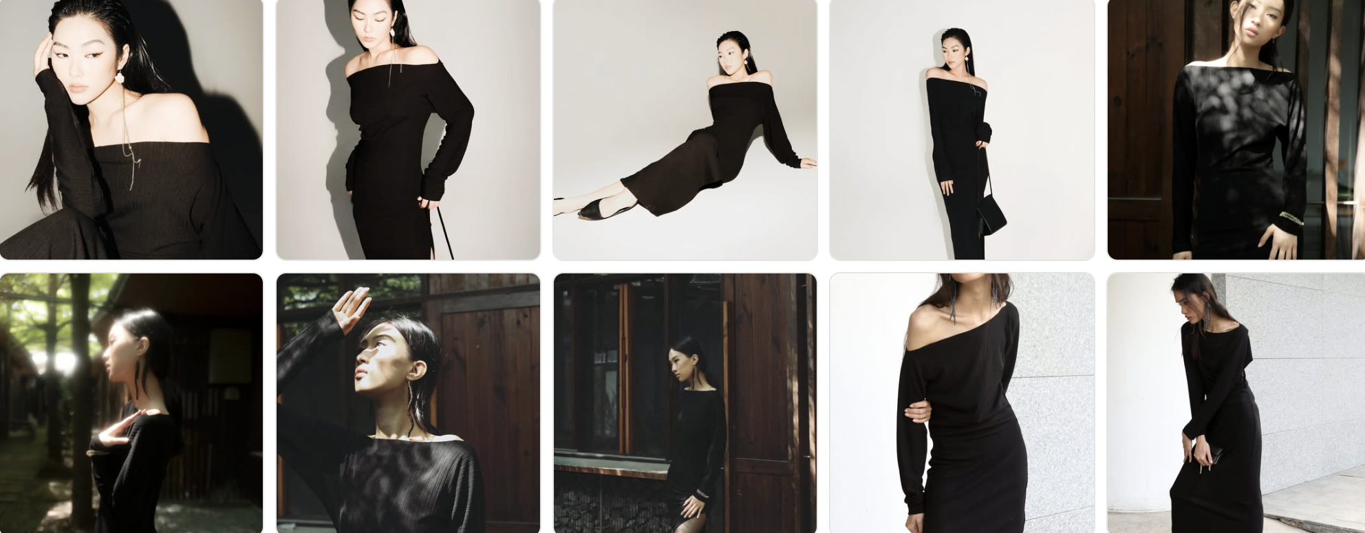 - Muted and Timeless Color Palette: The brand predominantly uses neutral, classic, and deep tones such as black, cream, beige, white, and subtle pastels. This characteristic enhances versatility and prevents pieces from looking dated.