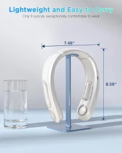 Chiếc quạt đeo cổ không cánh của Hotsales – như hình minh họa – là một trong những sản phẩm nổi bật nhất hiện nay nhờ hội tụ đủ các yếu tố: thiết kế thời trang, không gây vướng víu, hoạt động hiệu quả và an toàn.