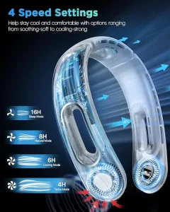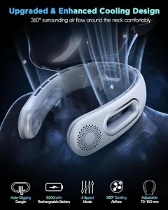 - Công nghệ thổi gió 360 độ: Gió được phân tán đều quanh cổ, tạo cảm giác mát toàn diện mà không cần điều chỉnh hướng thủ công.