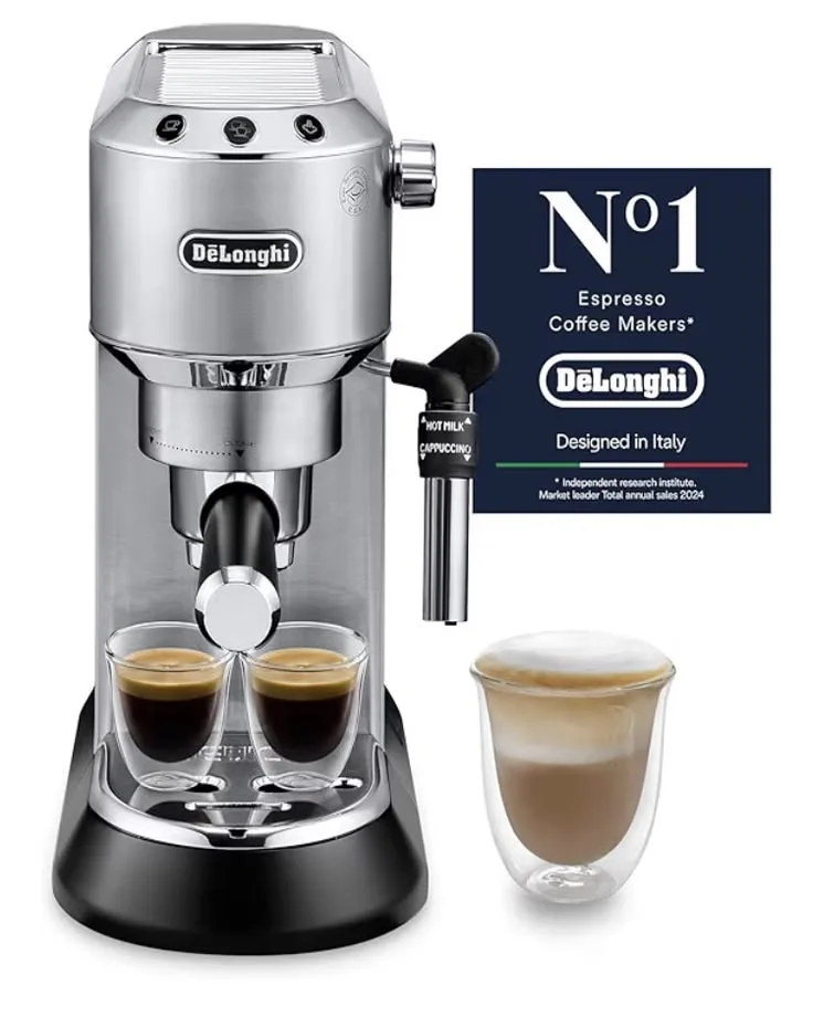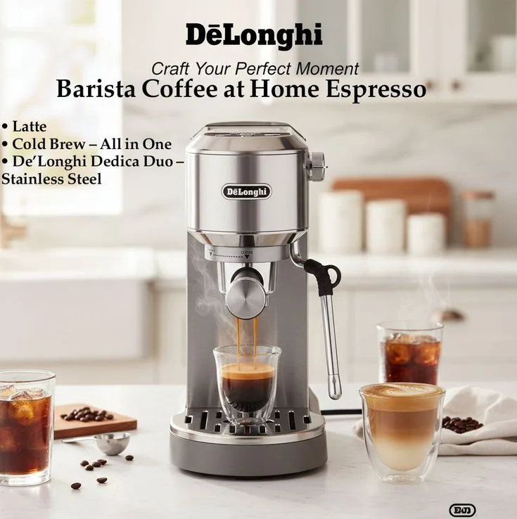 Trong thế giới của những tín đồ yêu cà phê, thương hiệu DeLonghi từ lâu đã trở thành bảo chứng cho sự kết hợp giữa kỹ thuật cơ khí Ý chính xác và tư duy thiết kế thời thượng. Dòng máy pha cà phê gia đình nhỏ gọn (điển hình như mẫu Dedica trong hình) chính là minh chứng cho việc bạn không cần một không gian bếp quá lớn để sở hữu những ly Espresso, Cappuccino hay Latte chuẩn vị.