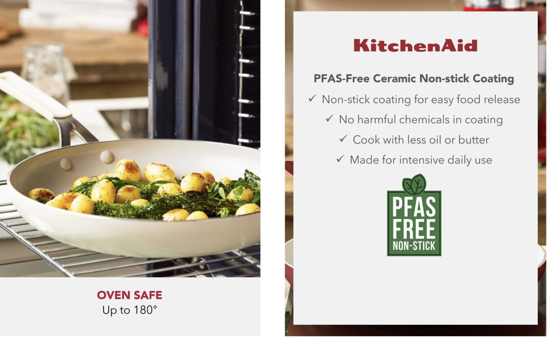 KitchenAid không chỉ nổi tiếng với máy trộn bột mà dòng nồi chảo nhôm anodized của họ cũng là một “tượng đài” về độ bền.