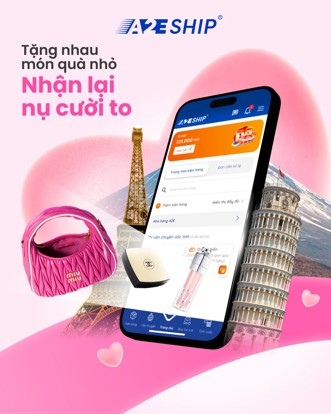 A2EShip – Dịch vụ mua hộ quốc tế chính là “người giải cứu” hoàn hảo. Với dịch vụ Ship For Me, A2EShip cung cấp giải pháp vận chuyển hàng hóa trọn gói từ Việt Nam đi quốc tế. Du khách chỉ cần mua sắm tại Local Brand Việt và gửi đến kho của A2EShip. Chúng tôi sẽ xử lý toàn bộ quy trình: đóng gói chuyên nghiệp, ship hàng quốc tế an toàn, uy tín, và lo thủ tục hải quan, đảm bảo tracking rõ ràng. A2EShip giúp du khách thoải mái mua sắm mà không cần lo lắng về giới hạn hành lý.