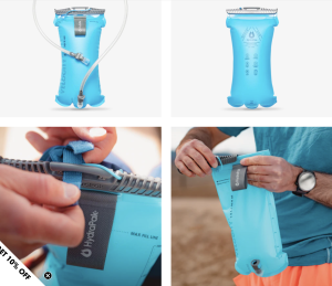 Túi nước HydraPak có thiết kế nhỏ gọn, linh hoạt và có thể gấp gọn sau khi sử dụng. Dung tích phổ biến từ 1.5L đến 3L, phù hợp với các loại ba lô chuyên dụng cho chạy bộ, trekking, leo núi hay đạp xe. Một số mẫu còn được trang bị tay cầm tích hợp hoặc dây treo tiện lợi, cùng hệ thống đóng mở trượt (Slide-Seal™) giúp đổ nước và vệ sinh dễ dàng.