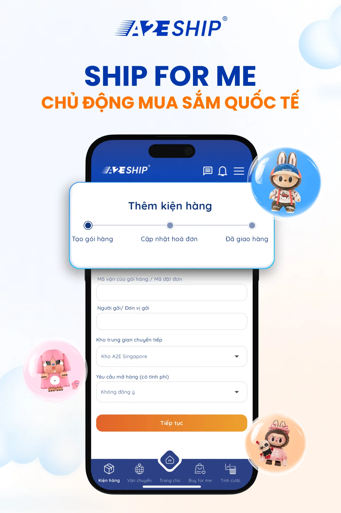 Với Ship-for-me của A2EShip, bạn không chỉ mua được sản phẩm yêu thích từ bất kỳ đâu mà còn hoàn toàn chủ động và dễ dàng tận hưởng trải nghiệm mua sắm quốc tế mọi lúc, mọi nơi. Hãy để A2EShip giúp bạn vượt qua mọi giới hạn, để sở thích mua sắm toàn cầu của bạn trở nên đơn giản hơn bao giờ hết!
